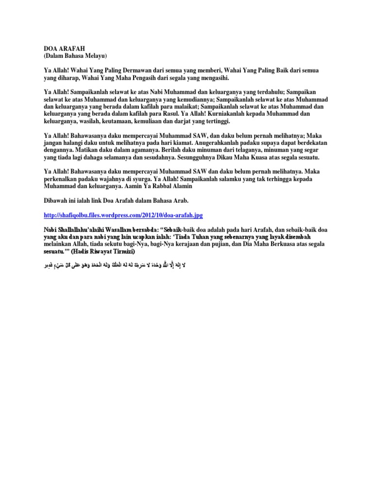 Doa Arafah Dalam Bahasa Melayu / Doa malam arafah adalah doa ketika jemaah haji berada di padang arafah pada 09 zulhijjah.