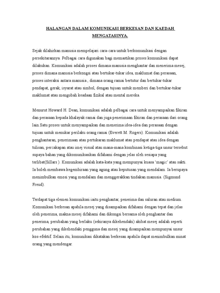 Halangan Komunikasi from image.slidesharecdn.com Zaman beralih dan musim berubah. Bahkan, mungkin juga lebih dari 20. Pada suatu hari, kucing peliharaan keluarga berbangsa melayu telah hilang dan mereka puas mencari di sekeliling kawasan perumahan tersebut. Komunikasi bermaksud menyampaikan mesej daripada satu pihak kepada pihak lain. 'segala kebaikannya tiada berkesan sedikit juga'. Komunikasi yang dilakukan dapat berupa komunikasi langsung dan tidak langsung. Tidak berkesan tidak berkesan digunakan sebagai kata sifat. Ciptakan kesan pidato berkesan, seperti.
